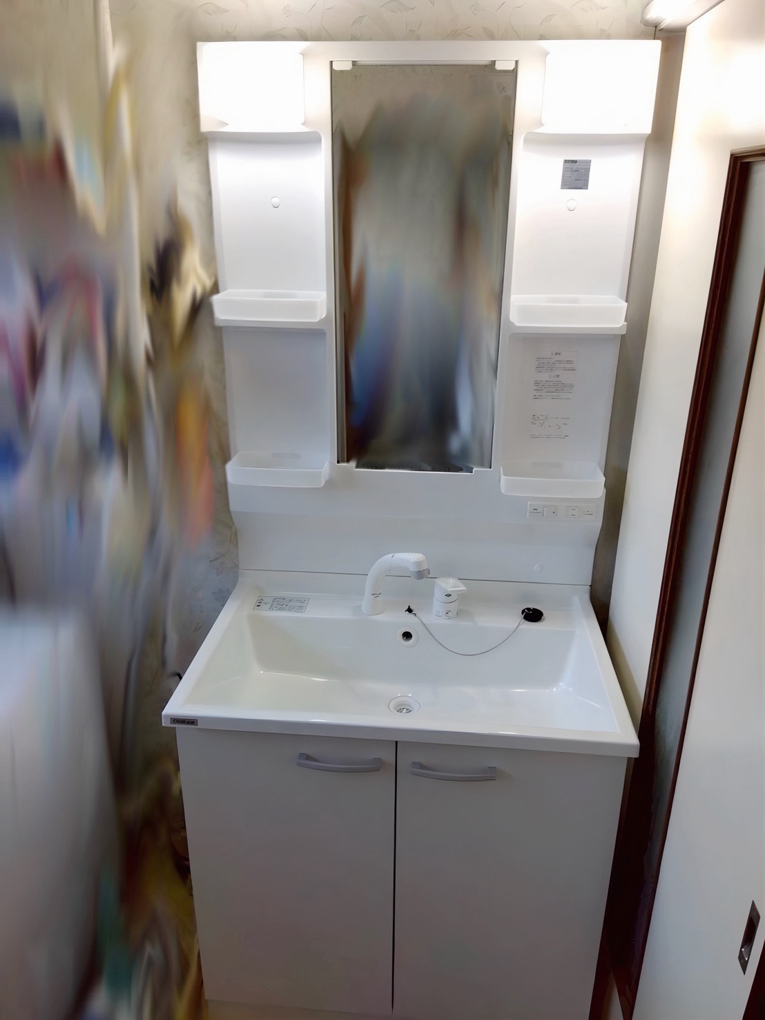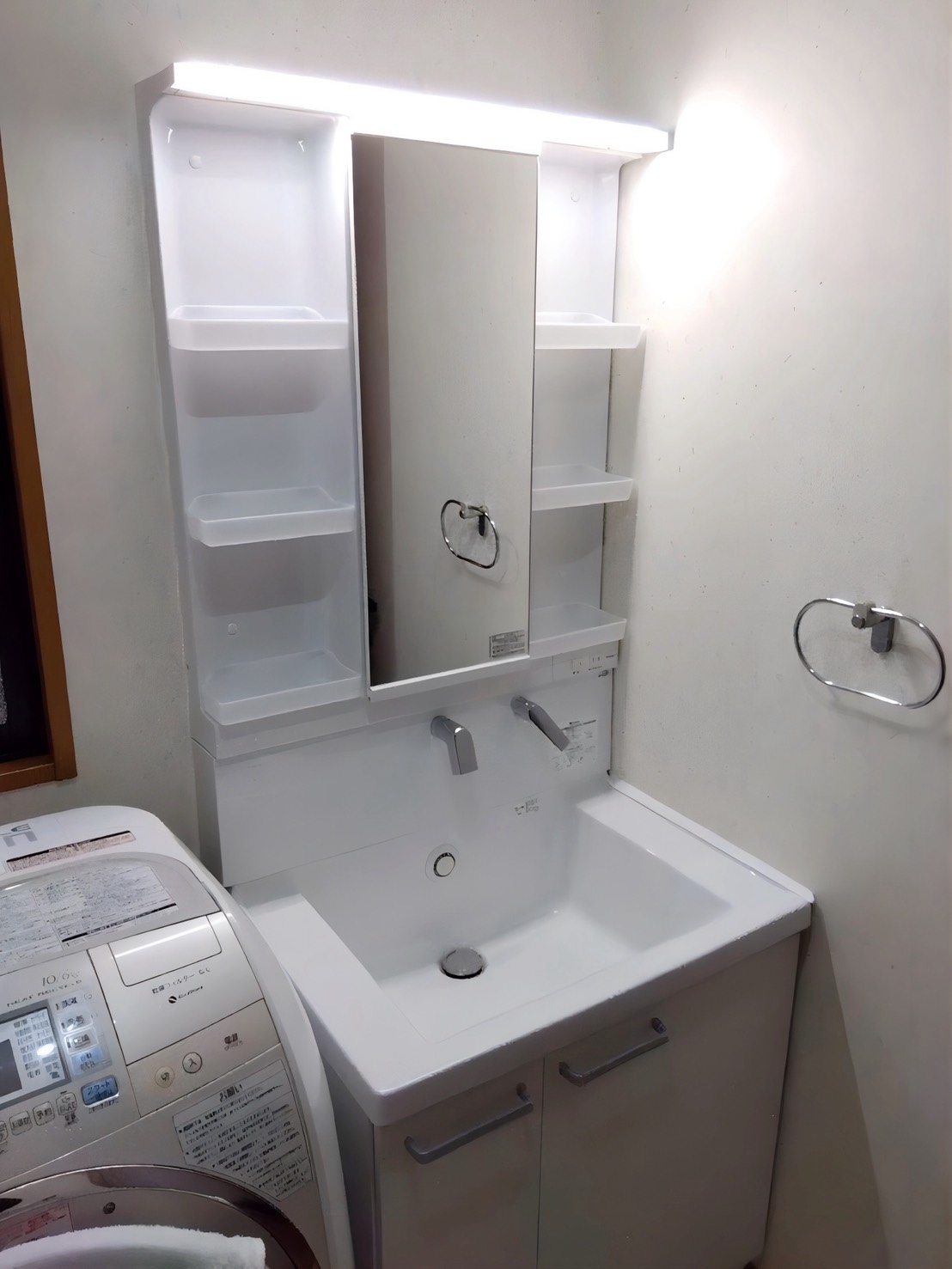 全体を真っ白で統一して清潔感のある洗面化粧台に変身しました! |